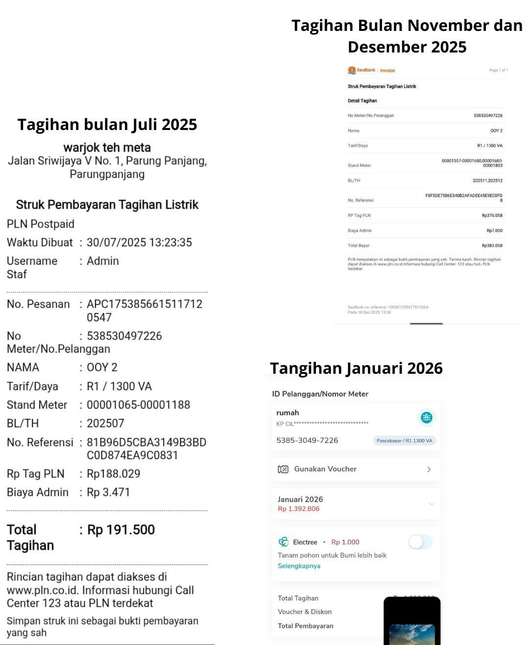 Kronologi Kenaikan Tagihan Tak Wajar Menurut Maftuh, pemakaian listrik bulanan di rumahnya di Kampung Ciparai Bakti RT 03 RW 05 No. 130, Kecamatan Parung Panjang, biasanya hanya sekitar 123 kWh. Namun, pada tagihan Januari 2026, angka itu tiba-tiba melonjak menjadi lebih dari 900 kWh, sehingga total tagihan mencapai Rp1,4 juta.