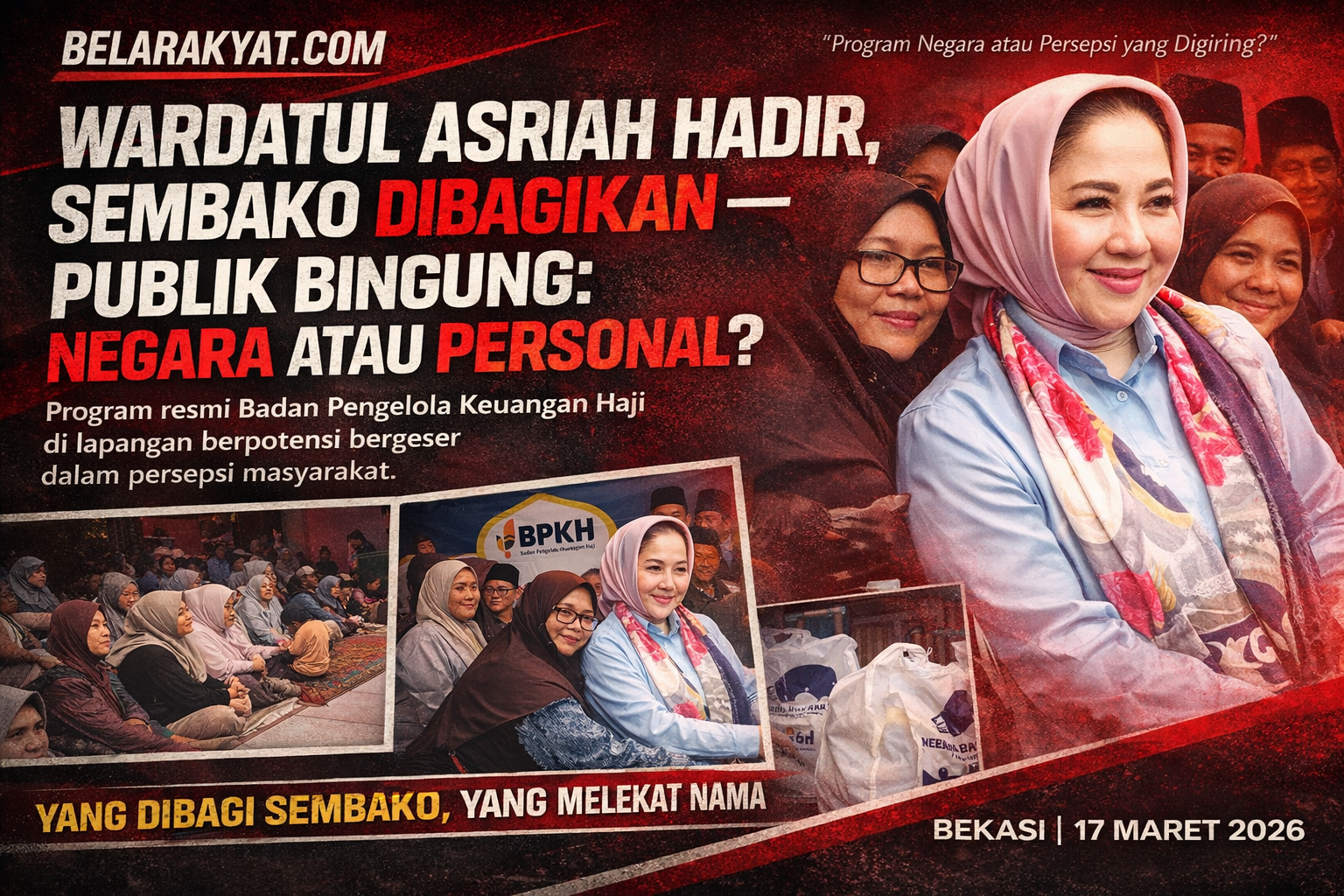 BEKASI — Di ujung Ramadhan yang kian menipis menuju Idul Fitri, sebuah peristiwa sosial berlangsung di Tambun Selatan: pembagian sembako di rumah salah seorang warga Desa Tridayasakti, Tambun Selatan pada hari ini, Selasa (17/3/2026) yang menghadirkan dua wajah sekaligus (empati yang nyata dan tanda tanya yang tak bisa diabaikan). Di tengah kerumunan warga yang berharap, nama Wardatul Asriah mencuat sebagai figur yang hadir di lokasi. Namun, sebagaimana prinsip dasar jurnalisme, kehadiran bukanlah kesimpulan, melainkan pintu awal bagi verifikasi.