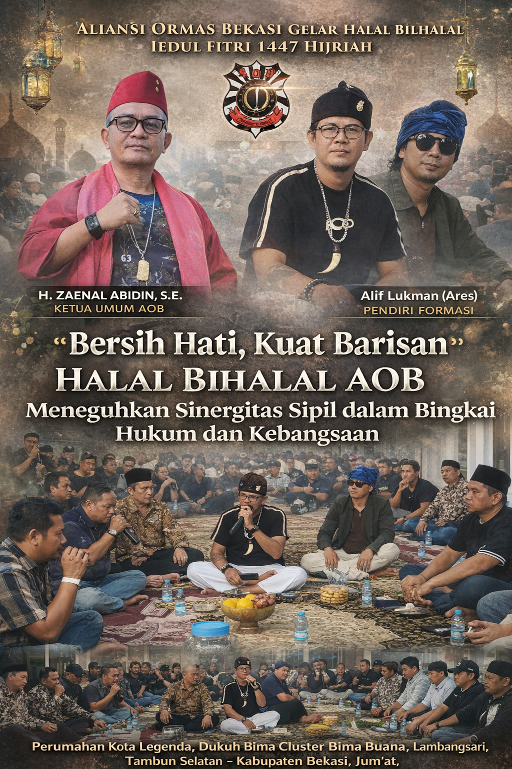 BEKASI ~ Aliansi Ormas Bekasi (AOB) menggelar Halal Bihalal Idul Fitri 1447 Hijriah dalam suasana hangat namun sarat makna di kediaman Ketua Umum AOB, Perumahan Kota Legenda, Dukuh Bima Cluster Bima Buana, Lambangsari, Tambun Selatan, Kabupaten Bekasi, pada Jumat (27/3/2026). Momentum ini bukan sekadar seremoni pasca-Ramadhan, melainkan ruang refleksi kolektif untuk merajut kembali persatuan elemen masyarakat sipil dalam satu naungan visi kebangsaan yang kokoh.