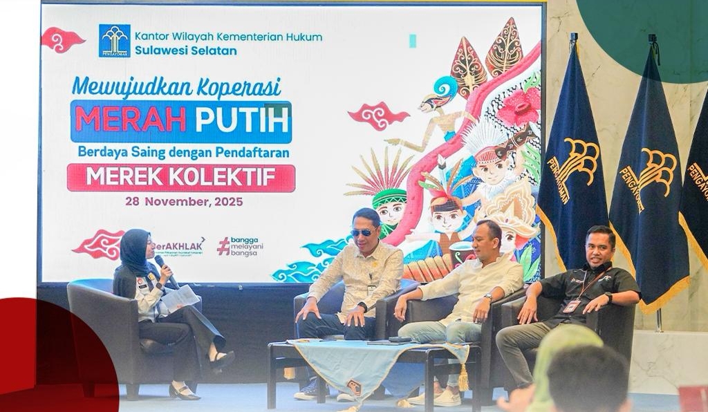 Makassar – Dinas Pariwisata (Dispar) Kota Makassar menjadi narasumber dalam Sosialisasi bertema “Mewujudkan Koperasi Merah Putih Berdaya Saing dengan Pendaftaran Merek Kolektif” yang digelar Kementerian Hukum (Kemenkum) Sulawesi Selatan (Sulsel) di Aula Pancasila Kantor Wilayah Kemenkum Sulsel, Jumat (28/11/2025).