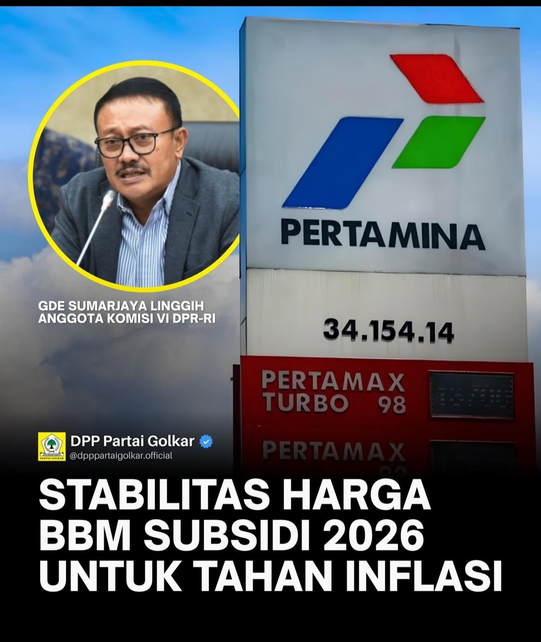 JAKARTA – Anggota Komisi VI DPR RI dari Fraksi Partai Golkar Dapil Bali Gde Sumarjaya Linggih (Demer) menegaskan pentingnya menjaga stabilitas harga bahan bakar minyak (BBM) subsidi sebagai langkah strategis untuk menahan laju inflasi sekaligus melindungi daya beli masyarakat di tengah tekanan ekonomi global.