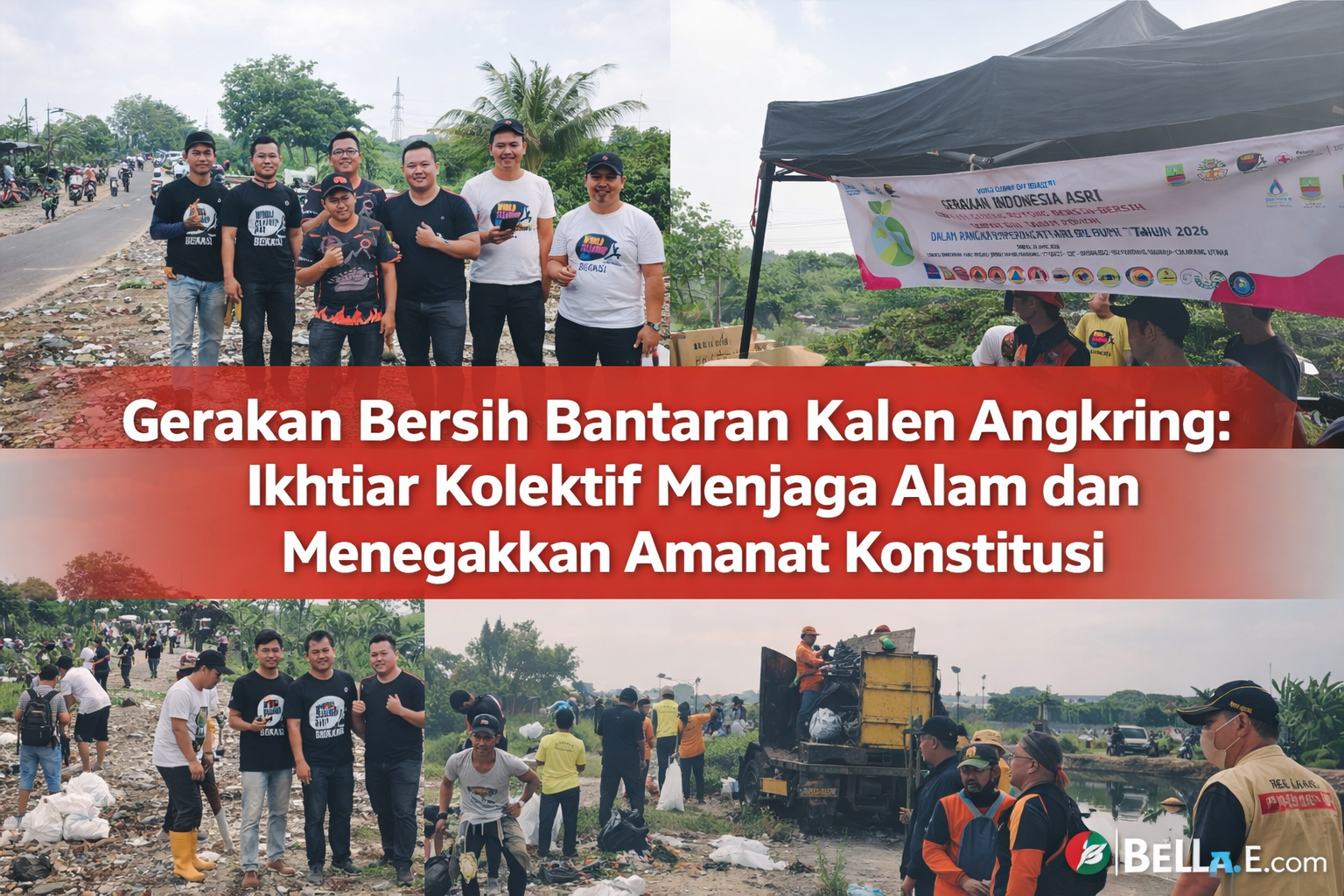BEKASI — Di antara riuh rendah kehidupan urban yang kian padat, sebuah gerakan sunyi namun bermakna menggema dari bantaran Kalen Angkring, Desa Karangraharja. Kegiatan bersih-bersih yang digelar lintas elemen masyarakat ini bukan sekadar rutinitas seremonial, melainkan manifestasi kesadaran kolektif bahwa lingkungan hidup adalah warisan sekaligus amanah yang tak boleh diabaikan.