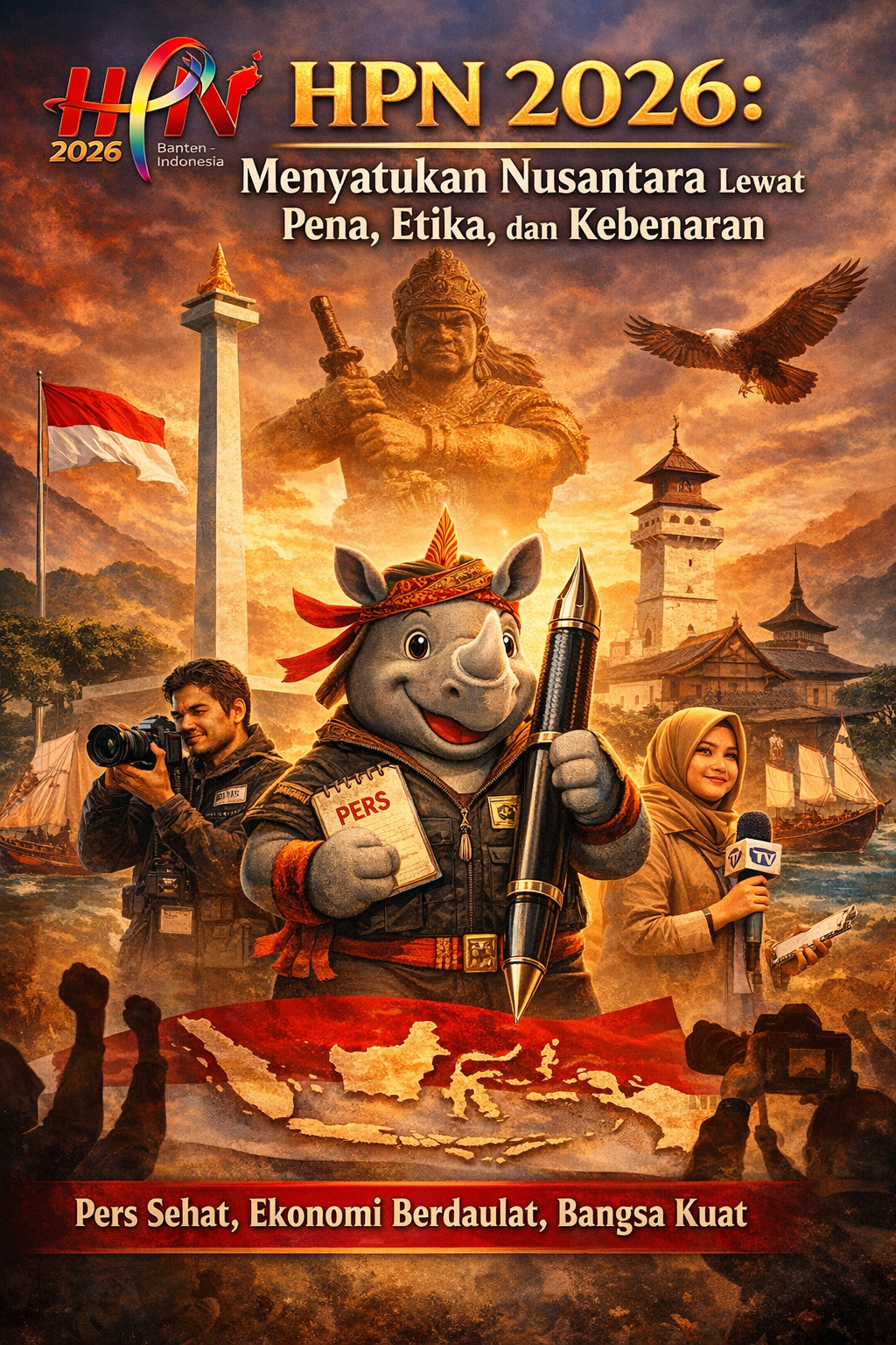 Maskot HPN 2026, Si Juhan, Badak Jawa yang tangguh, menjadi simbol filosofis keteguhan pers Indonesia. Ia melambangkan wartawan yang kokoh menjaga habitat kebenaran, tidak mudah goyah oleh tekanan, serta setia pada fakta. Dengan akar budaya Banten dan pandangan kebangsaan, simbol ini menegaskan bahwa kekuatan pers bukan terletak pada kerasnya suara, melainkan pada ketepatan data dan kedalaman makna.
