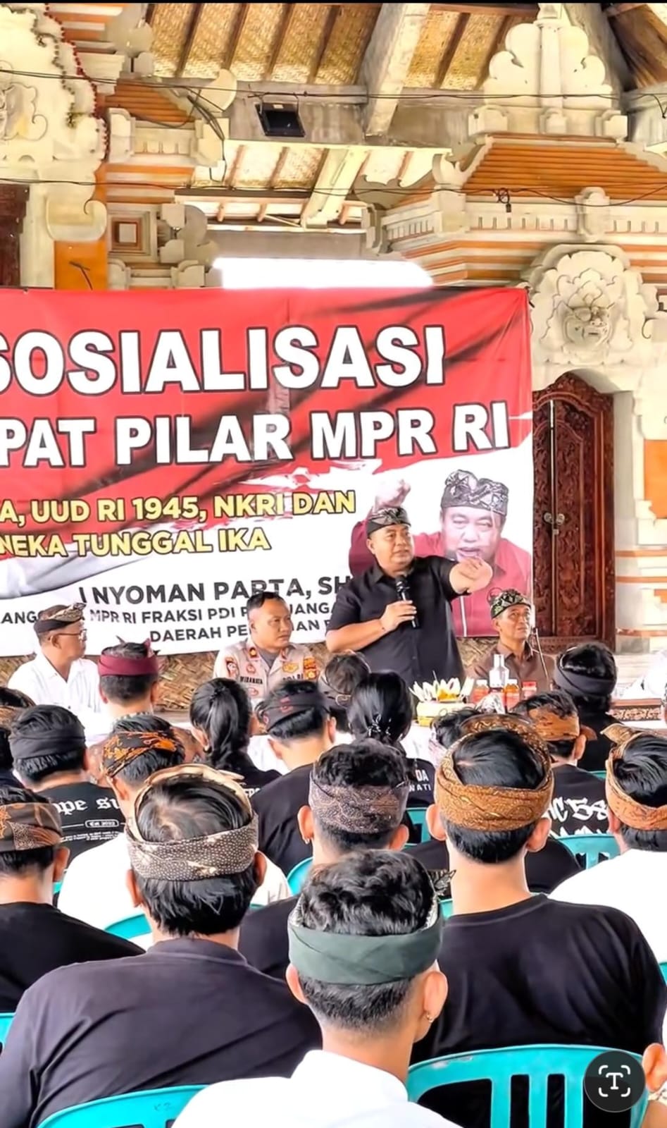 BALI – Anggota Majelis Permusyawaratan Rakyat Republik Indonesia (MPR RI) dari Fraksi Partai Demokrasi Indonesia Perjuangan I Nyoman Parta kembali menggelar Sosialisasi Empat Pilar MPR RI di daerah pemilihannya, Bali. Kegiatan tersebut tidak hanya membahas fondasi kehidupan berbangsa, tetapi juga menyoroti ancaman nyata yang dihadapi generasi muda, khususnya peredaran narkotika.