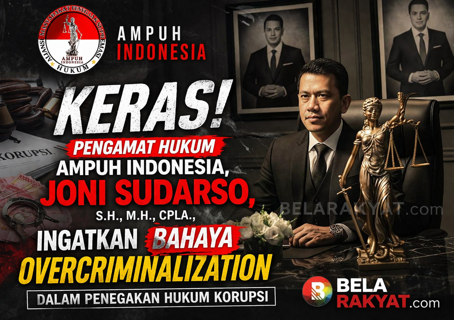 Pengamat Hukum dari Aliansi Masyarakat Penegak Supremasi Hukum Indonesia (AMPUH Indonesia), Joni Sudarso, S.H., M.H., CPLA., menegaskan pentingnya ketepatan klasifikasi dalam penegakan hukum pidana. Ia mengingatkan bahwa tidak semua tindakan yang bersinggungan dengan keuangan negara dapat serta-merta dikualifikasikan sebagai korupsi. Menurutnya, kekeliruan dalam membedakan antara penggelapan pribadi dan korupsi jabatan berisiko menciptakan overcriminalization yang justru melemahkan sistem hukum itu sendiri.