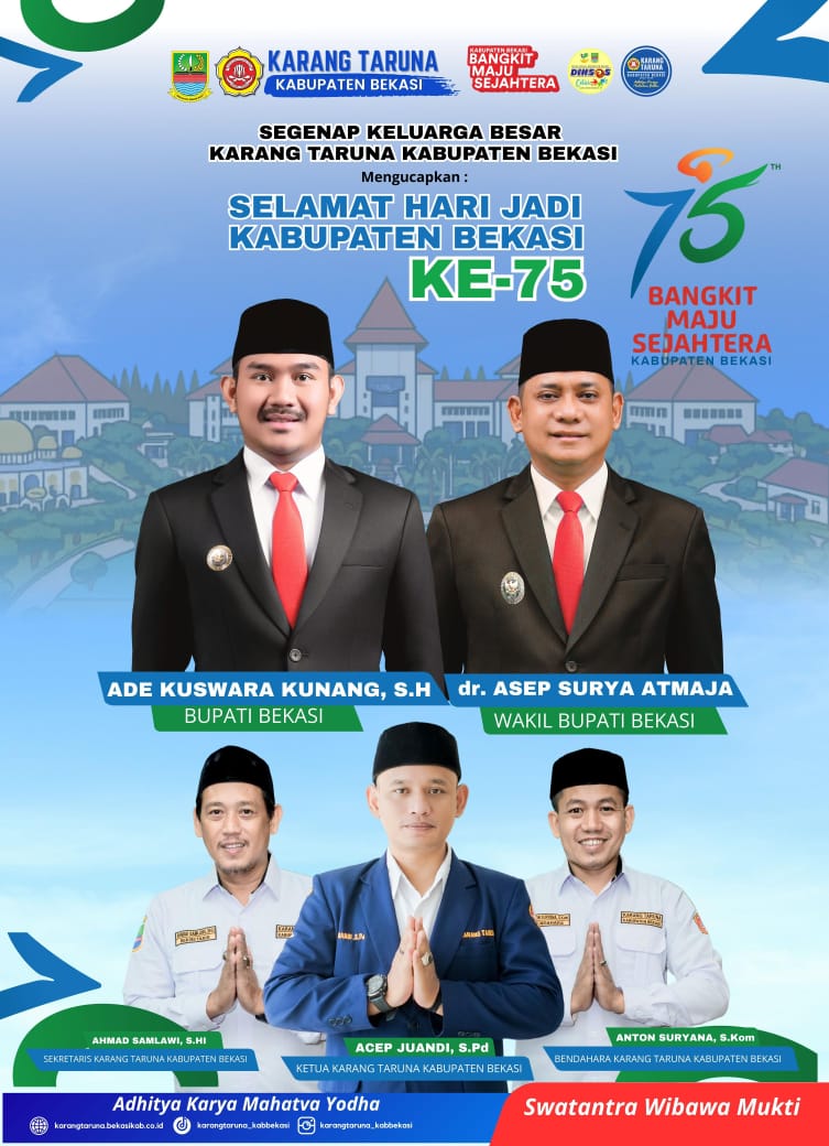 BEKASI ~ Kabupaten Bekasi memperingati Hari Ulang Tahun ke-75 dan Hari Kemerdekaan Republik Indonesia ke-80 dengan penuh semangat dan optimisme. Ketua Karang Taruna Kabupaten Bekasi, Acep Juandi, S.Pd, menyampaikan pesan inspiratif tentang pentingnya mengenang perjuangan para pahlawan bangsa dan menumbuhkan semangat pemuda dalam membangun negeri.