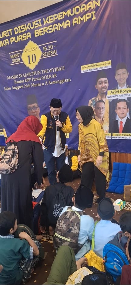 JAKARTA — Suasana hangat dan penuh keceriaan mewarnai kegiatan “Ngabuburit Diskusi Kepemudaan dan Buka Puasa Bersama” yang diselenggarakan DPP AMPI di Masjid Syajarotun Thoyyibah, kompleks DPP Partai Golkar, Kemanggisan, Jakarta Barat, Selasa (10/3/2026).
