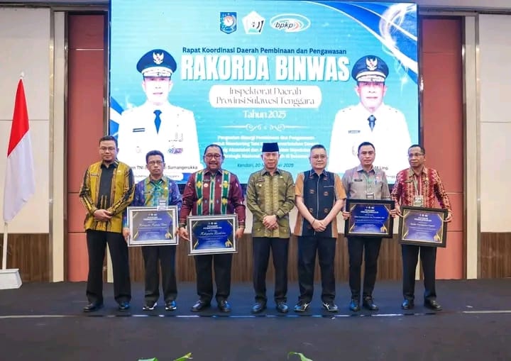 Kendari – Pemerintah Kabupaten Kolaka Timur (Koltim) berhasil meraih Penghargaan Persentase Tindak Lanjut Pemkab/Kota Tertinggi Tahun 2025 dari Pemerintah Provinsi Sulawesi Tenggara (Sultra). Penghargaan tersebut diserahkan oleh Gubernur Sulawesi Tenggara Mayjen TNI (Purn) Andi Sumangerukka, S.E., M.M. dalam acara Rapat Koordinasi Pembinaan dan Pengawasan Daerah (Rakor Binwas) Tahun 2025, yang dirangkaikan dengan Kongres AAIPI Wilayah Sulawesi Tenggara di Hotel Claro Kendari, Kamis (20/11/2025).
