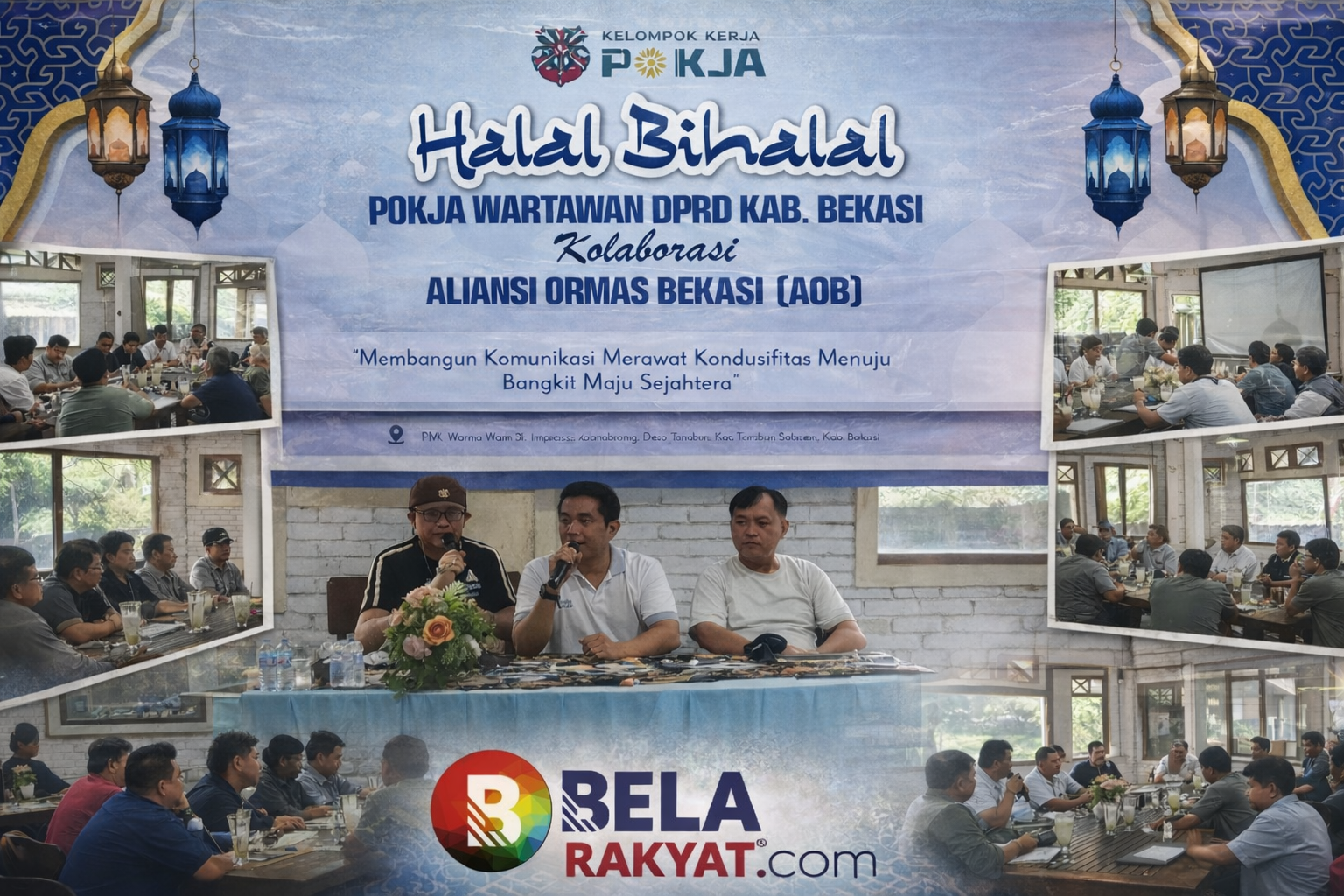 BEKASI — Di tengah arus zaman yang kerap menegangkan relasi sosial, semangat silaturahmi kembali menemukan momentumnya. Kelompok Kerja (POKJA) Wartawan DPRD Kabupaten Bekasi bersama Aliansi Ormas Bekasi (AOB) menggelar Halal Bihalal pasca Idul Fitri 1447 Hijriah di Warna-Warni Cafe & Resto, Senin (6/4/2026). Acara ini menjadi simpul pertemuan gagasan, ruang rekonsiliasi batin, sekaligus panggung kebersamaan yang sarat makna.