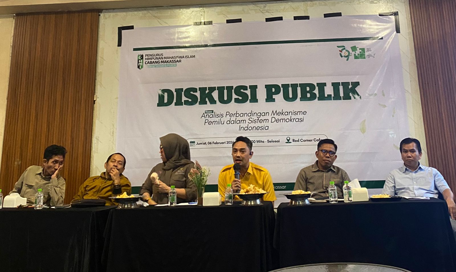 Makassar – Wakil Direktur DPP BSNPG sekaligus Tenaga Ahli Fraksi DPP Partai Golkar Andi Hendra Hidayat Paletteri, S.KM hadir sebagai narasumber pada Diskusi Publik yang diselenggarakan oleh HMI Cabang Makassar Bidang Sosial Politik di Red Corner Cafe Makassar, Jumat (6/2/2026).