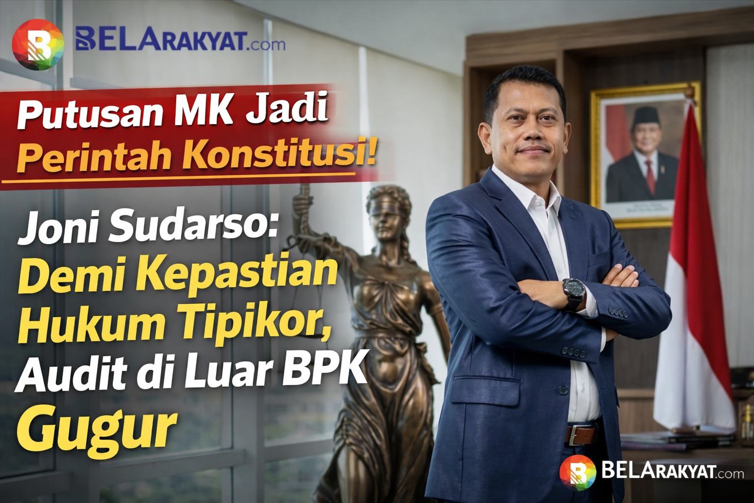 Joni Sudarso, S.H., M.H., CPLA, menyambut putusan ini sebagai momentum koreksi besar terhadap praktik penegakan hukum yang selama ini dinilai timpang. “Putusan MK ini bukan sekadar klarifikasi, melainkan perintah konstitusional yang Erga Omnes. Pengadilan kini terikat untuk hanya menerima audit BPK sebagai bukti utama kerugian negara. Ini putus rantai multitafsir yang selama ini dimanfaatkan untuk memutarbalikkan keadilan, terutama dalam perkara tindak pidana korupsi (Tipikor),” tegasnya kepada awak media BelaRakyat.com pada, Minggu (5/4/2026).